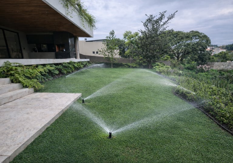 Implementación de un sistema de riego eficiente y automatizado que garantiza una hidratación uniforme del jardín, optimizando el consumo de agua. El mantenimiento continuo asegura áreas verdes saludables, estéticas y funcionales durante todo el año.